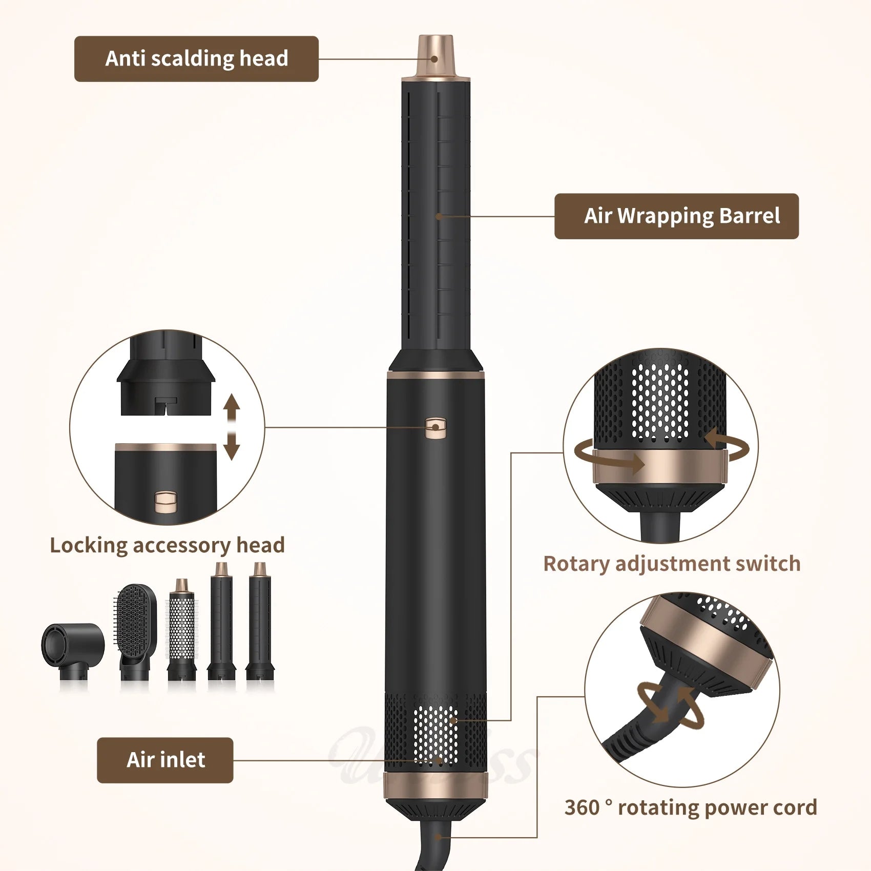 - Versatile Styling Tool: A 5-in-1 hair dryer brush that combines a hot air brush, curling wand, straightening brush, and volumizing brush